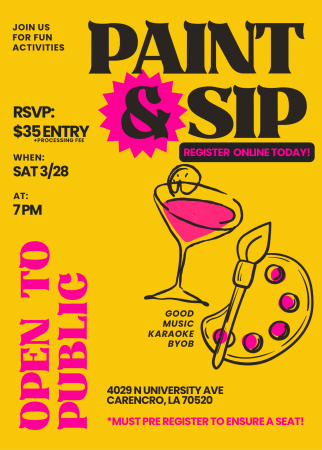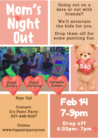 For any gatherings with It’s Paint Party we will provide the unforgetable and ultimate party experience. Customers are allowed to bring their own food, drinks (including light alcohol), and more to make the party their own. Many things are added daily to our party packages, so text 337-446-9197 for the latest party details.